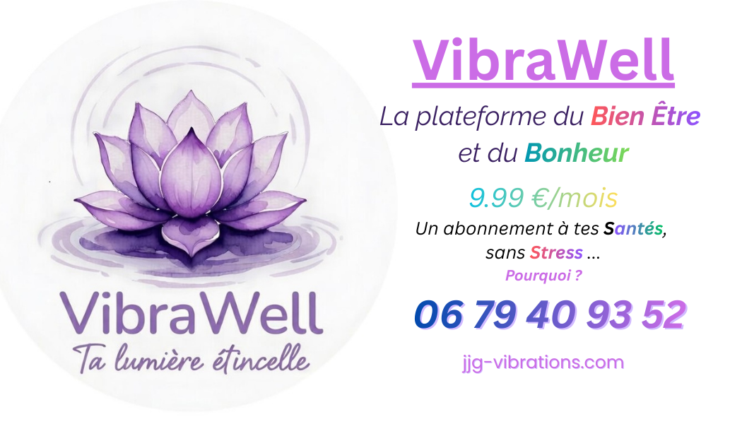 Un Abonnement Tout-en-Un sans besoin de téléchargements car, directement disponibles depuis la plateforme VIBRAWELL, afin d"élever tes vibrations au plus haut niveau, et ainsi échapper à bien des dysfonctionnements qui sont en résonance avec les basses vibrations.